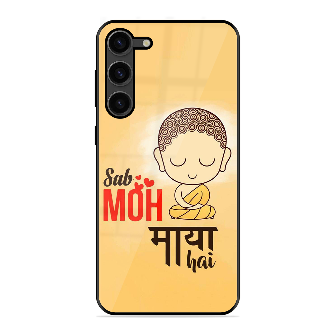 Tempered Glass Coated Metal Back Case for Samsung Galaxy S23 Plus 5G Moh Maya Hai Sab