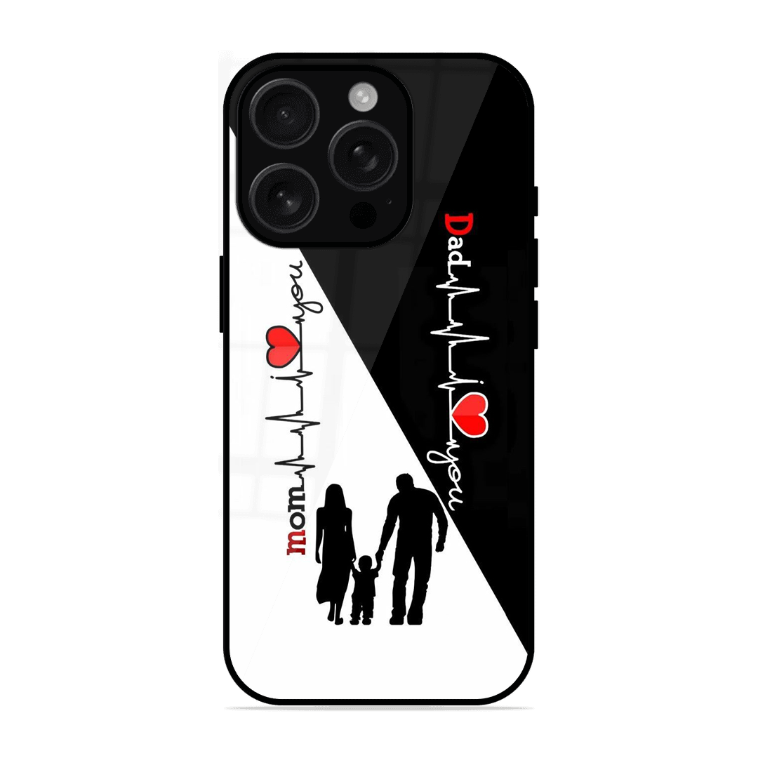 Tempered Glass Coated Metal Back Case for Apple Iphone 16 Pro Mom & Dad