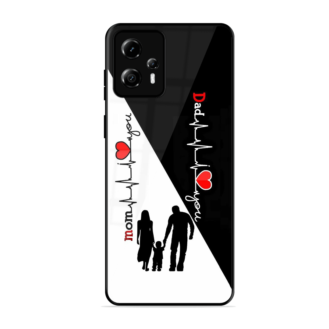 Tempered Glass Coated Metal Back Case for Motorola Moto G13 Mom & Dad