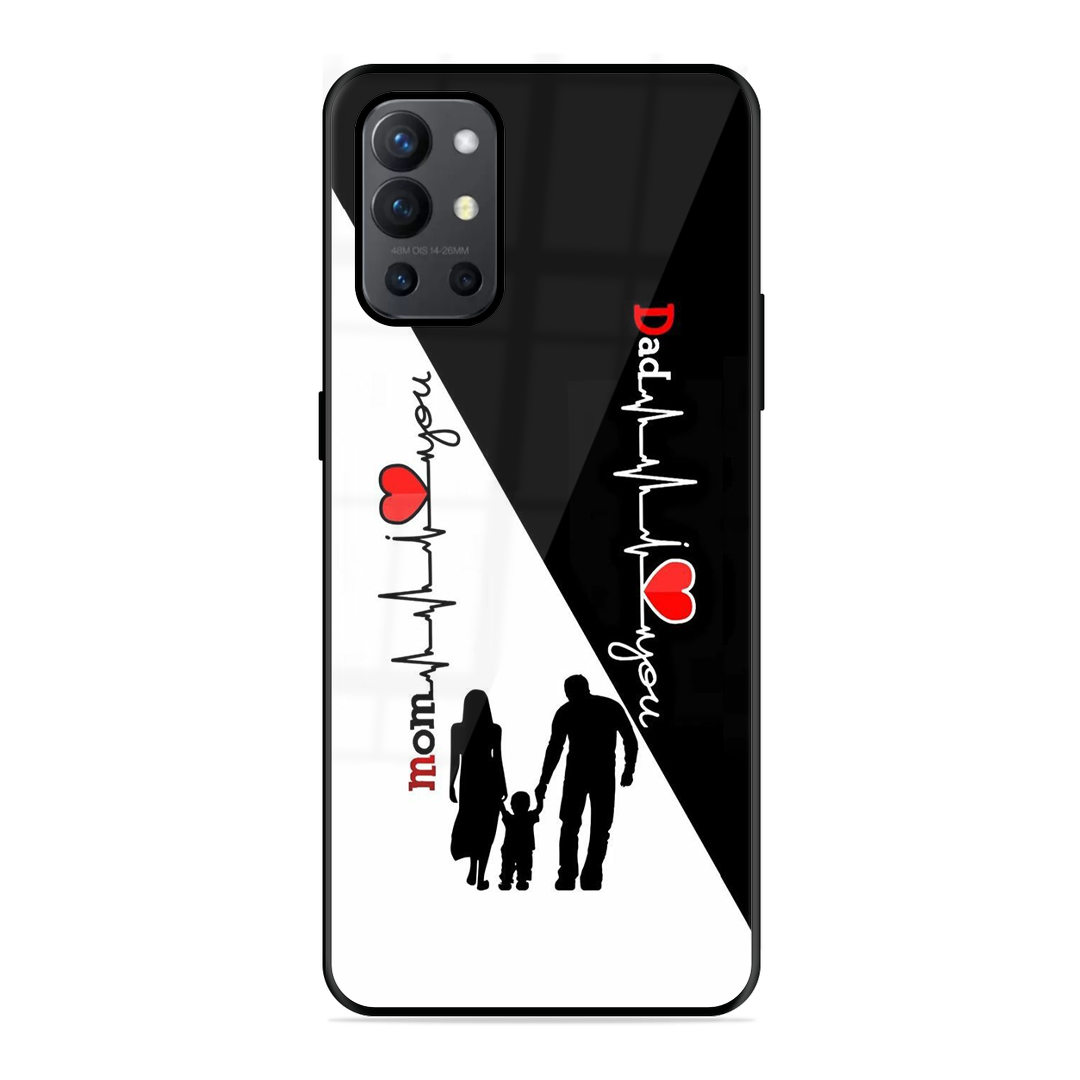 Tempered Glass Coated Metal Back Case for Oneplus 9R 5G Mom & Dad