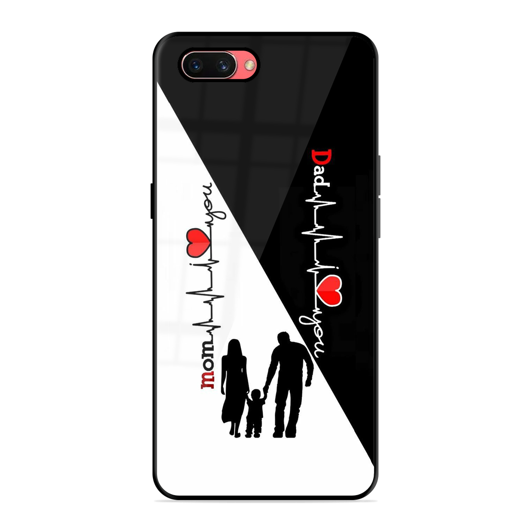 Tempered Glass Coated Metal Back Case for Oppo A3S Mom & Dad
