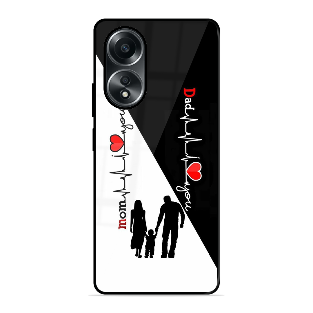 Tempered Glass Coated Metal Back Case for Oppo A58 Mom & Dad