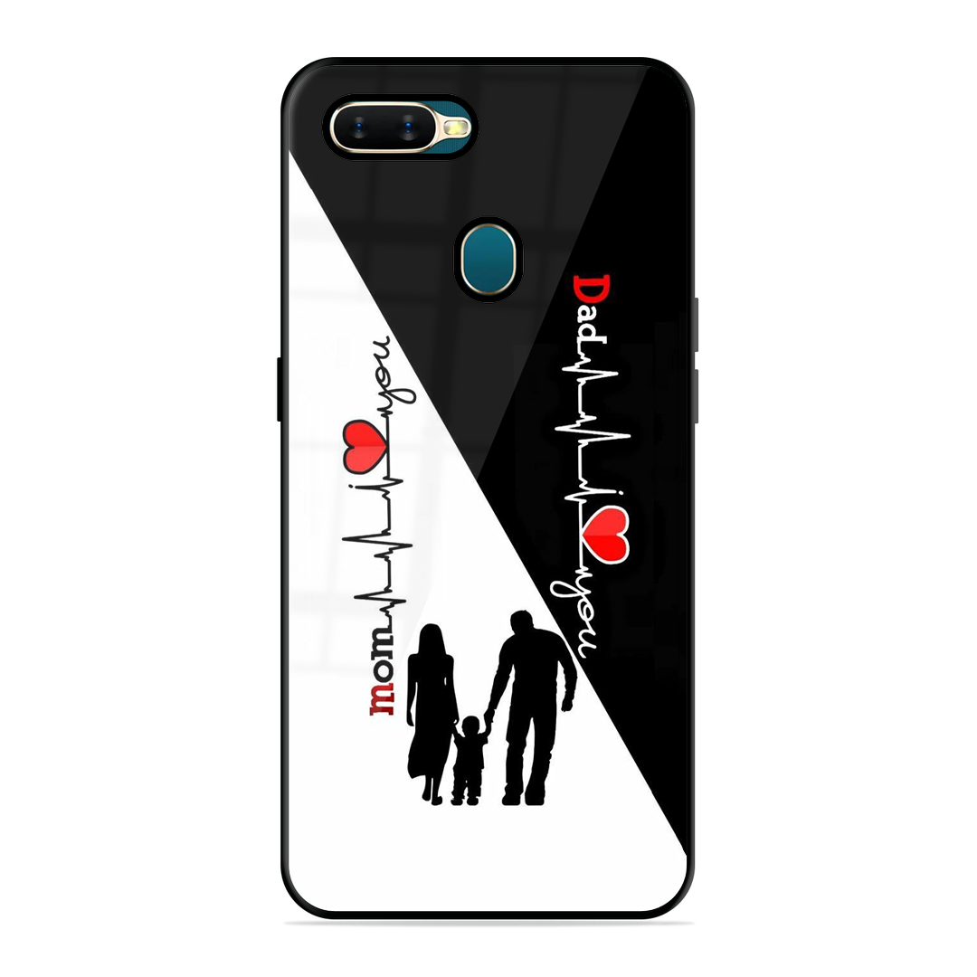 Tempered Glass Coated Metal Back Case for Oppo A7 Mom & Dad