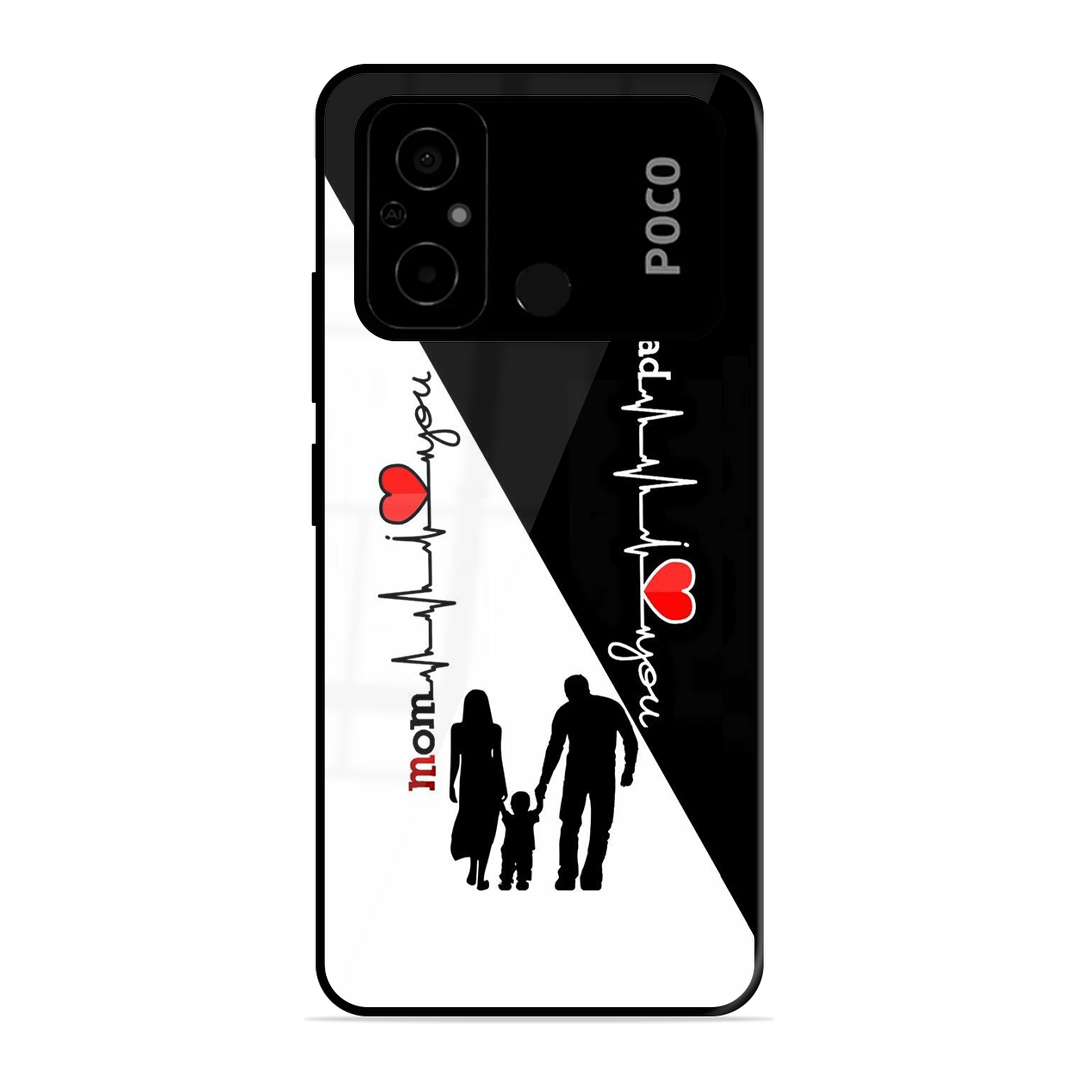 Tempered Glass Coated Metal Back Case for Poco C55 Mom & Dad