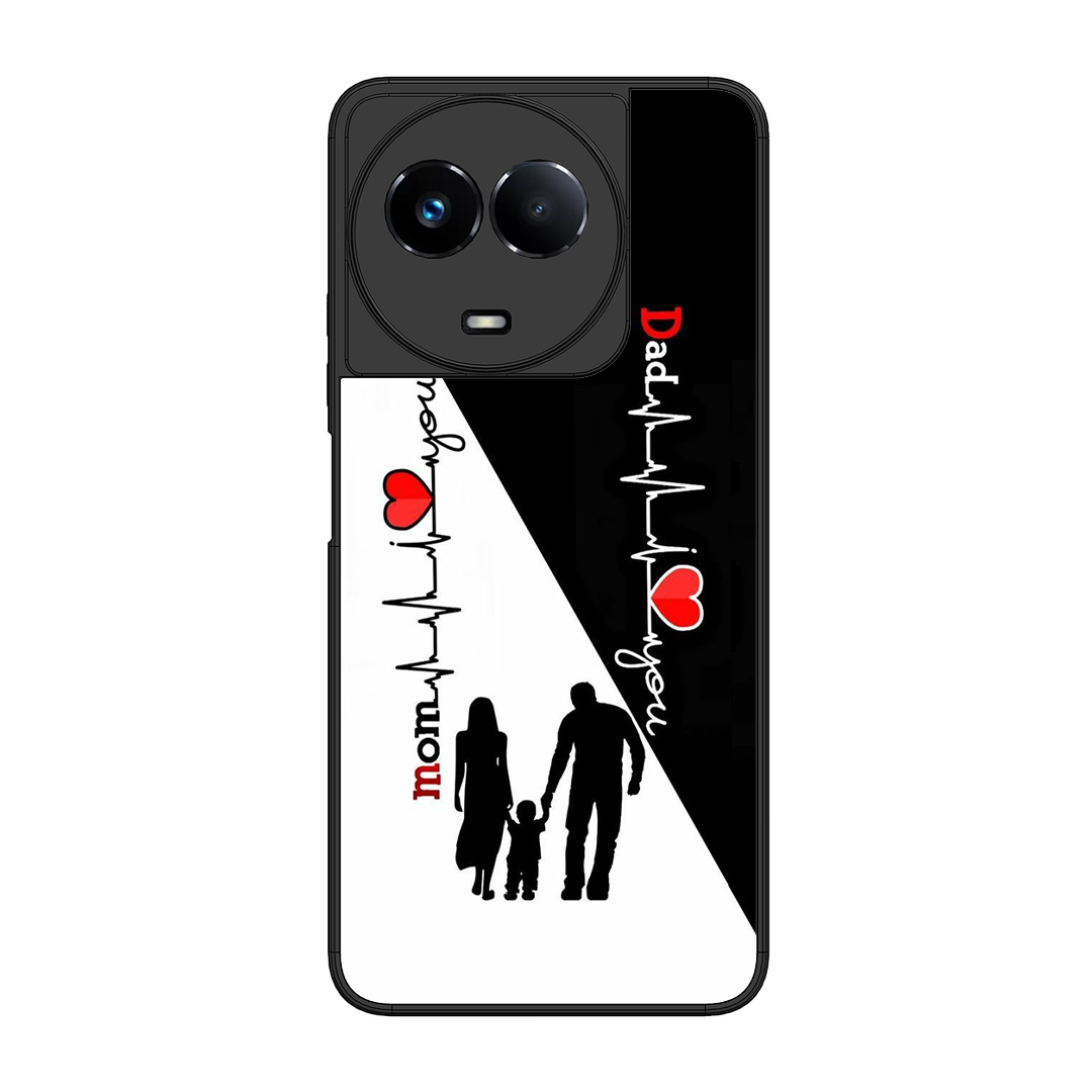 Tempered Glass Coated Metal Back Case for Realme 11 5G Mom & Dad
