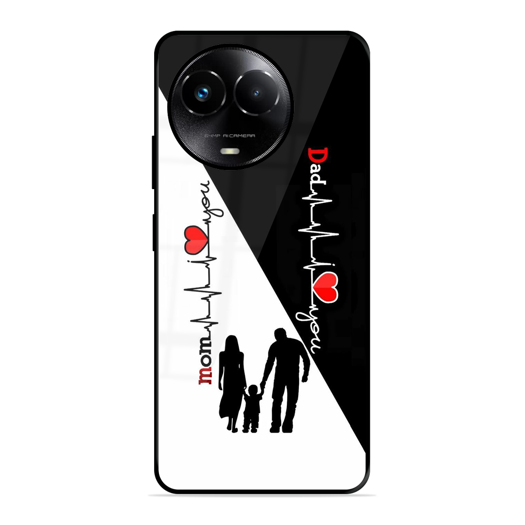 Tempered Glass Coated Metal Back Case for Realme 11X 5G Mom & Dad