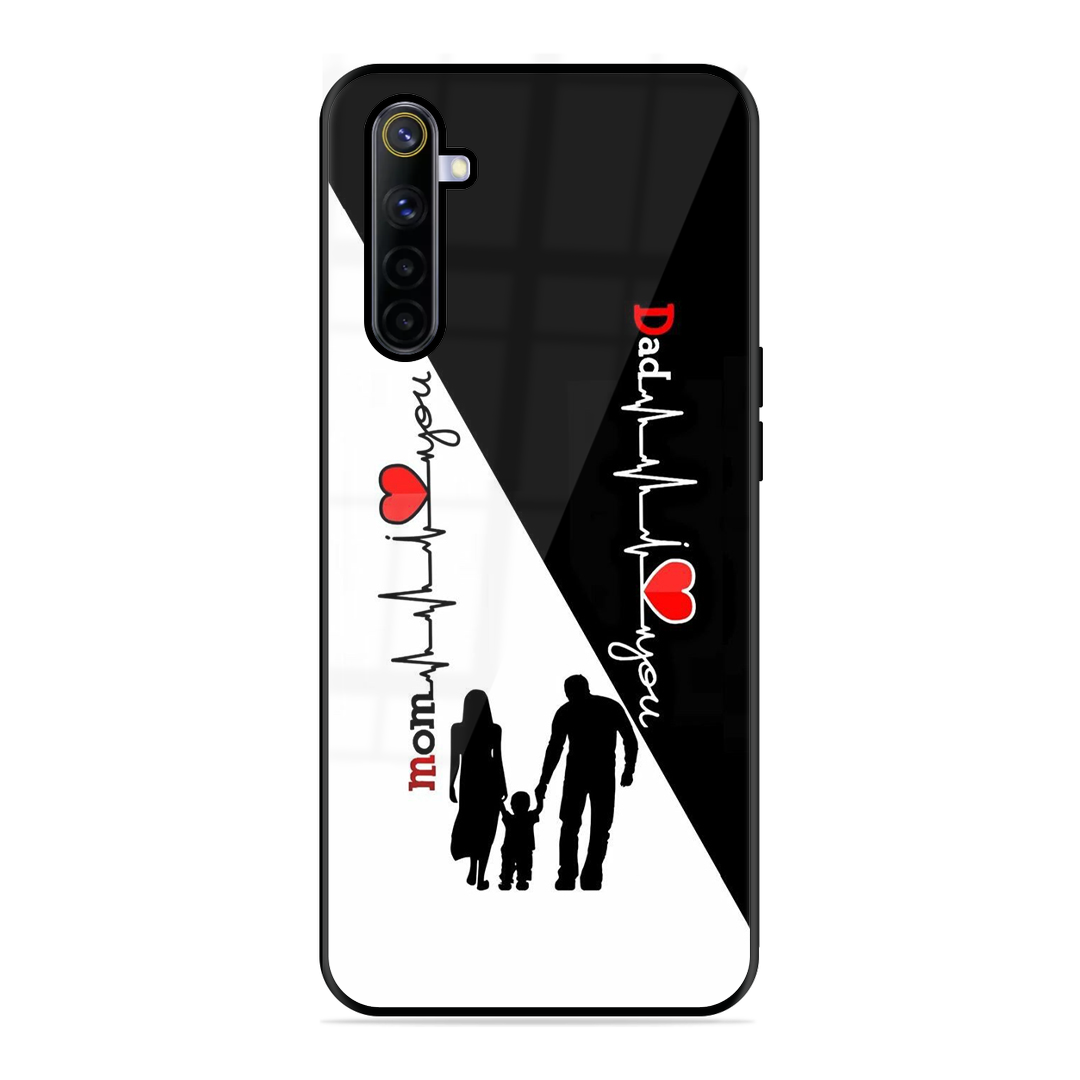 Tempered Glass Coated Metal Back Case for Realme 6 Mom & Dad