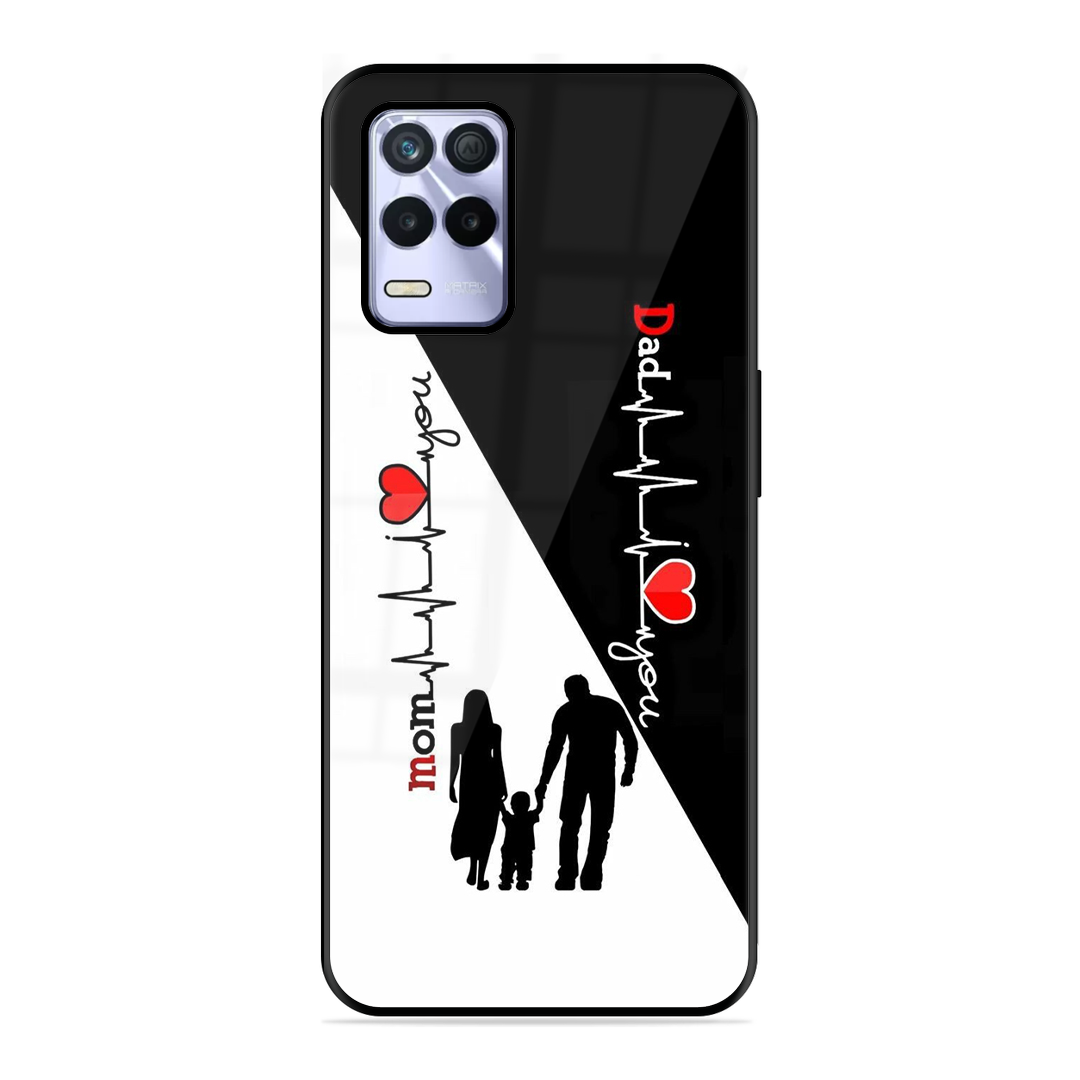 Tempered Glass Coated Metal Back Case for Realme 8S 5G Mom & Dad