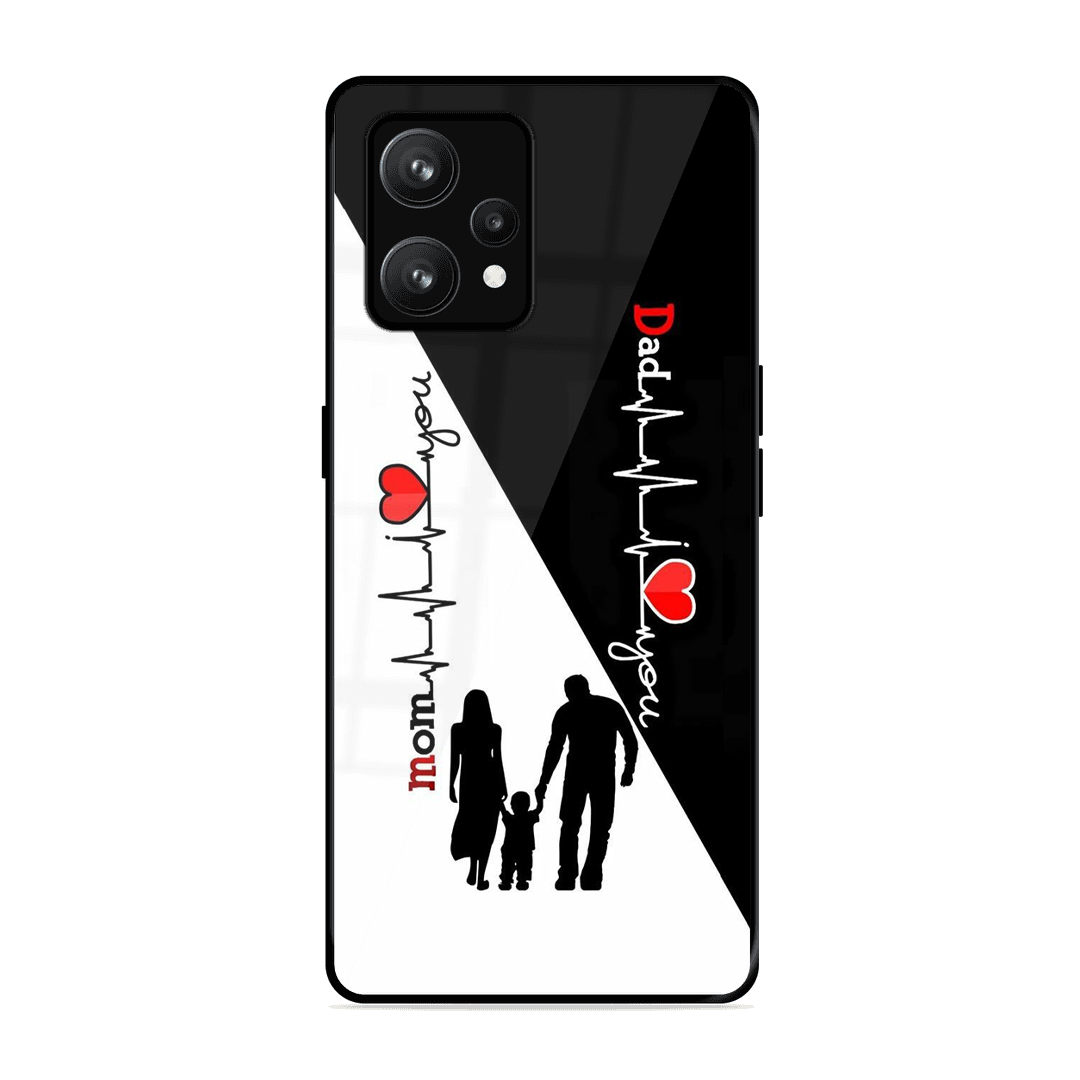 Tempered Glass Coated Metal Back Case for Realme 94G Mom & Dad