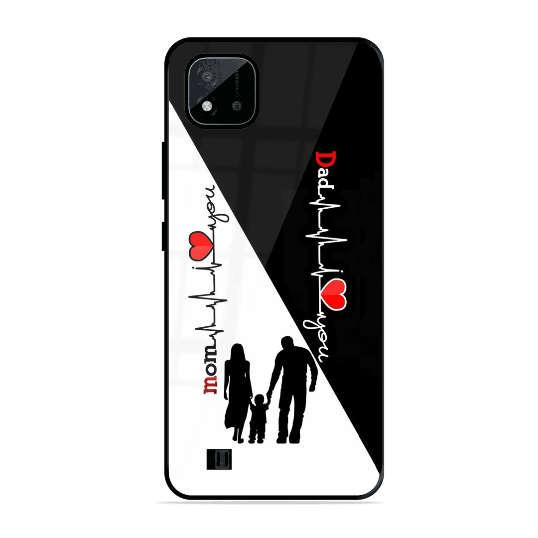 Tempered Glass Coated Metal Back Case for Realme C20 Mom & Dad