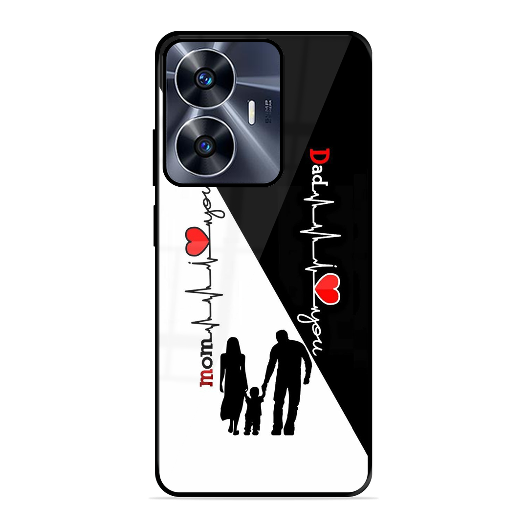 Tempered Glass Coated Metal Back Case for Realme C55 Mom & Dad