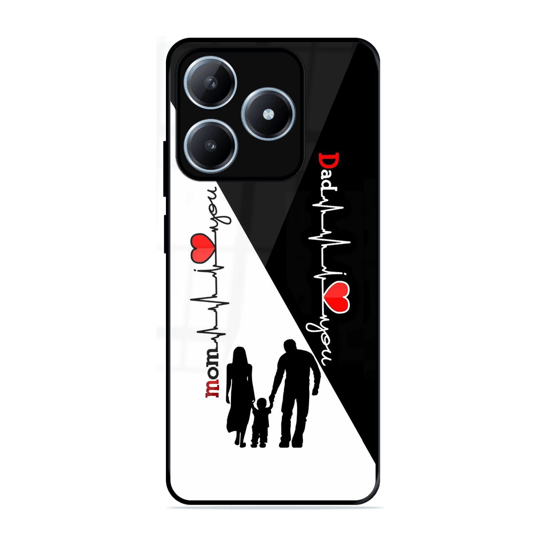 Tempered Glass Coated Metal Back Case for Realme C634G Mom & Dad