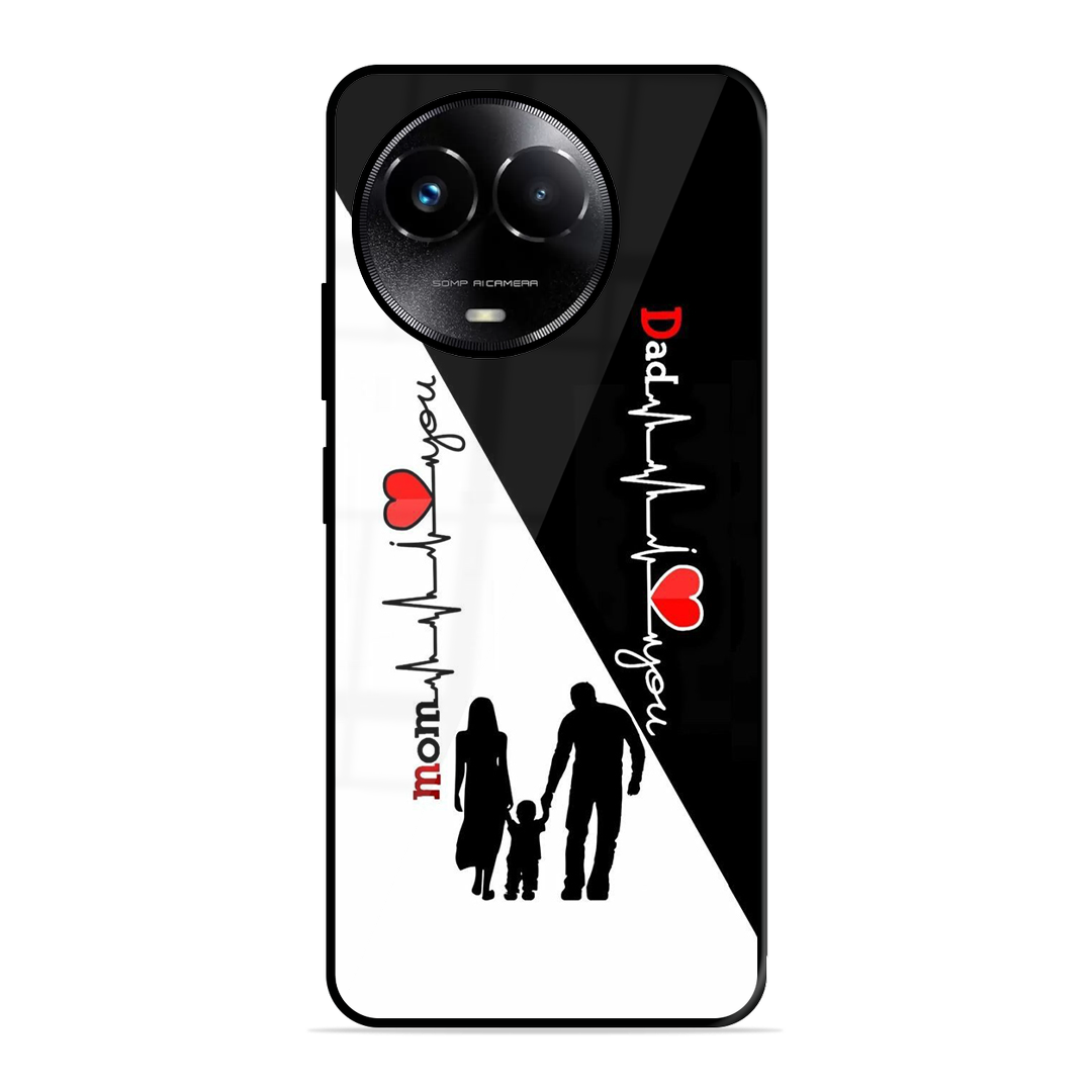 Tempered Glass Coated Metal Back Case for Realme Narzo 60X 5G Mom & Dad