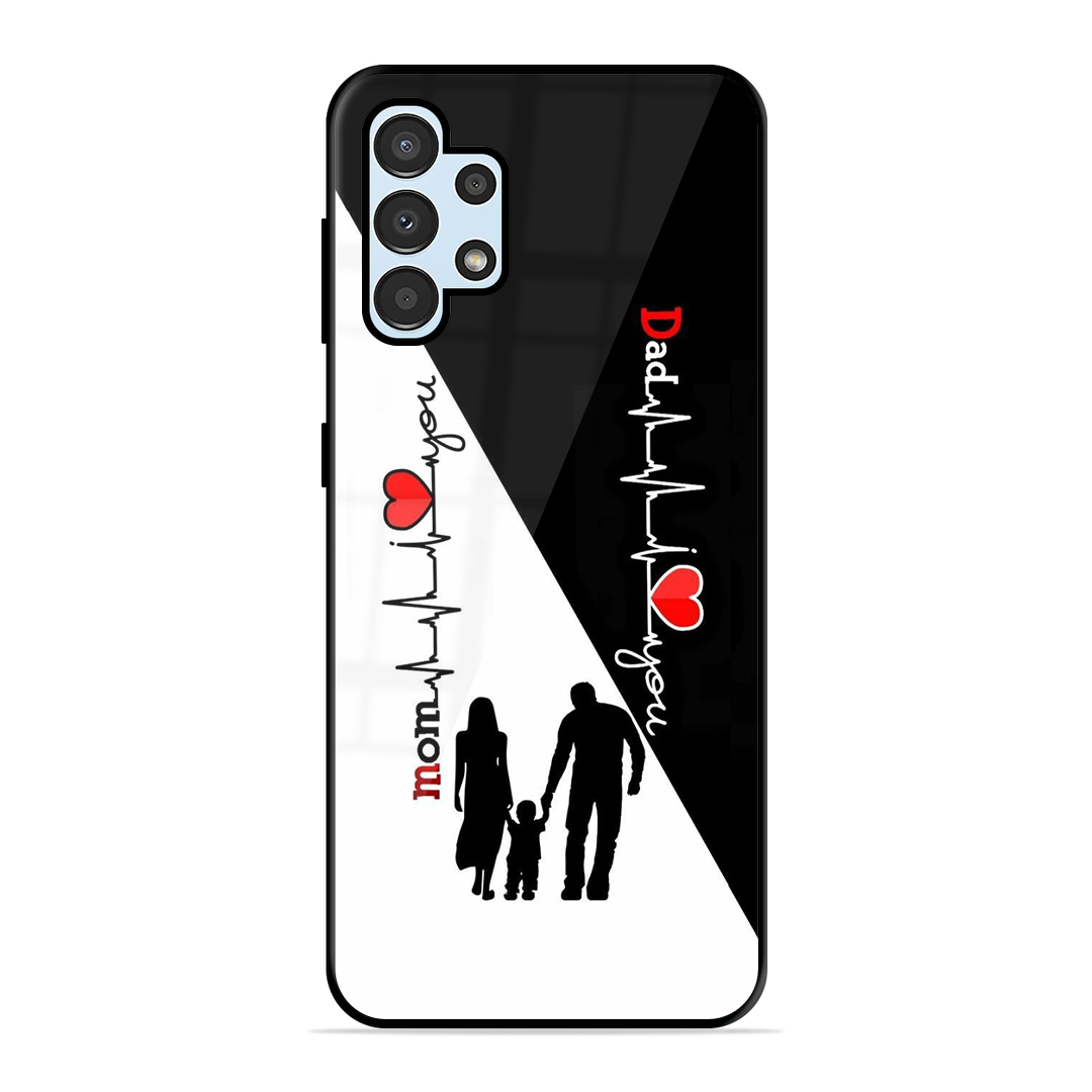 Tempered Glass Coated Metal Back Case for Samsung Galaxy A32 4G Mom & Dad