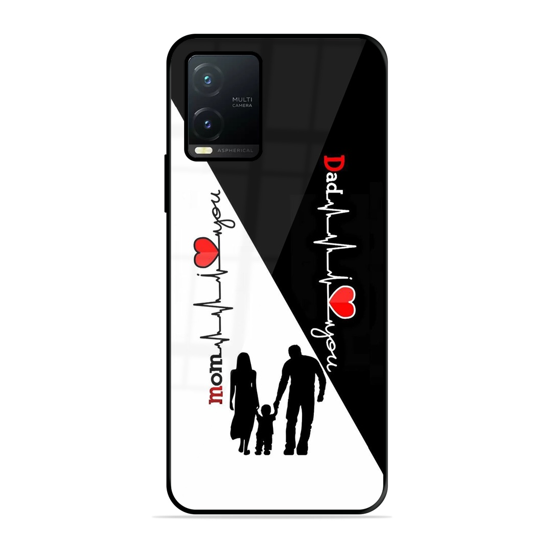 Tempered Glass Coated Metal Back Case for Vivo-T1X Mom & Dad