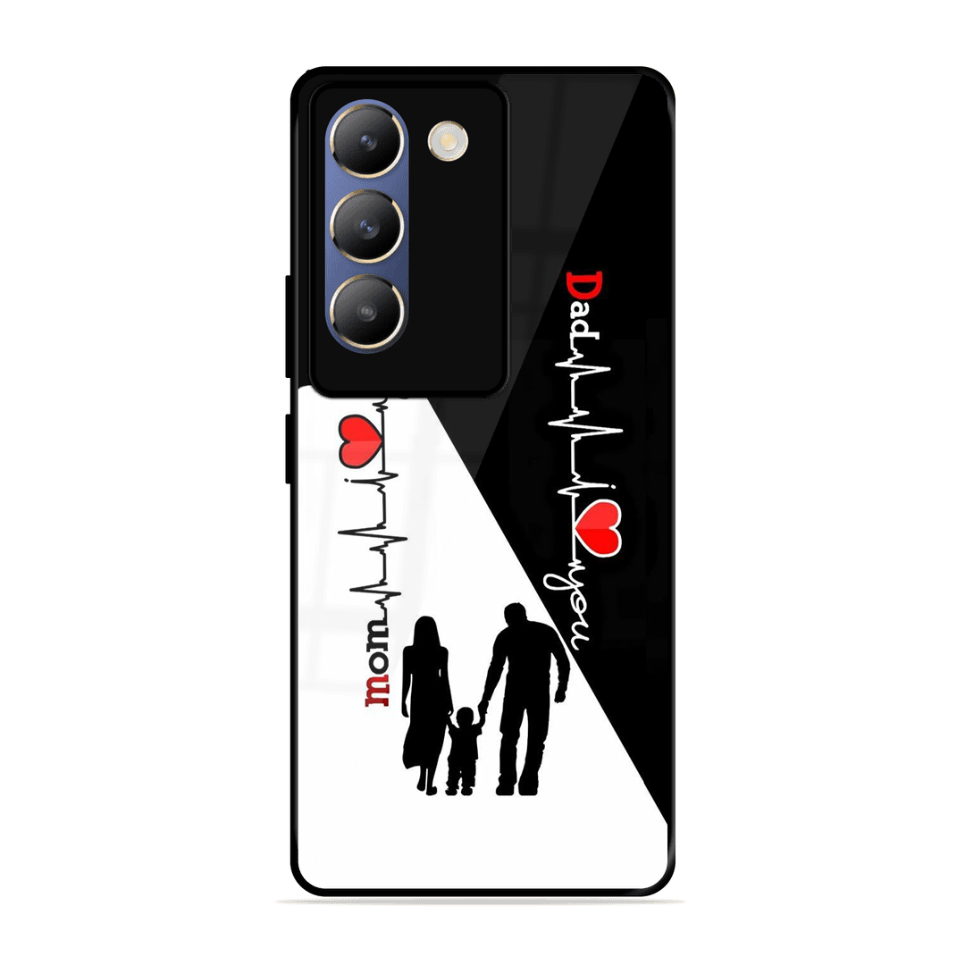 Tempered Glass Coated Metal Back Case for Vivo T3 5G Mom & Dad