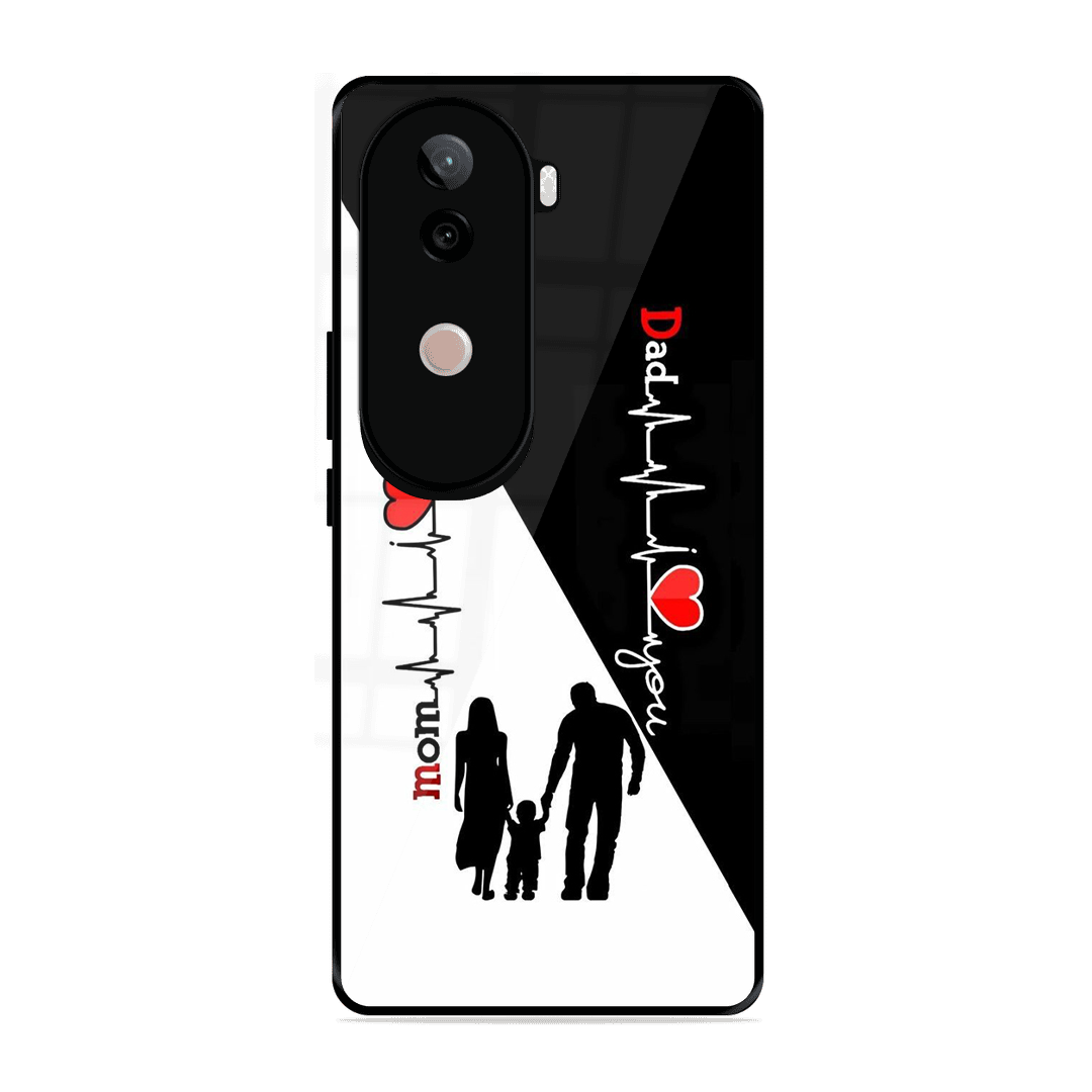 Tempered Glass Coated Metal Back Case for Vivo V40E 5G Mom & Dad