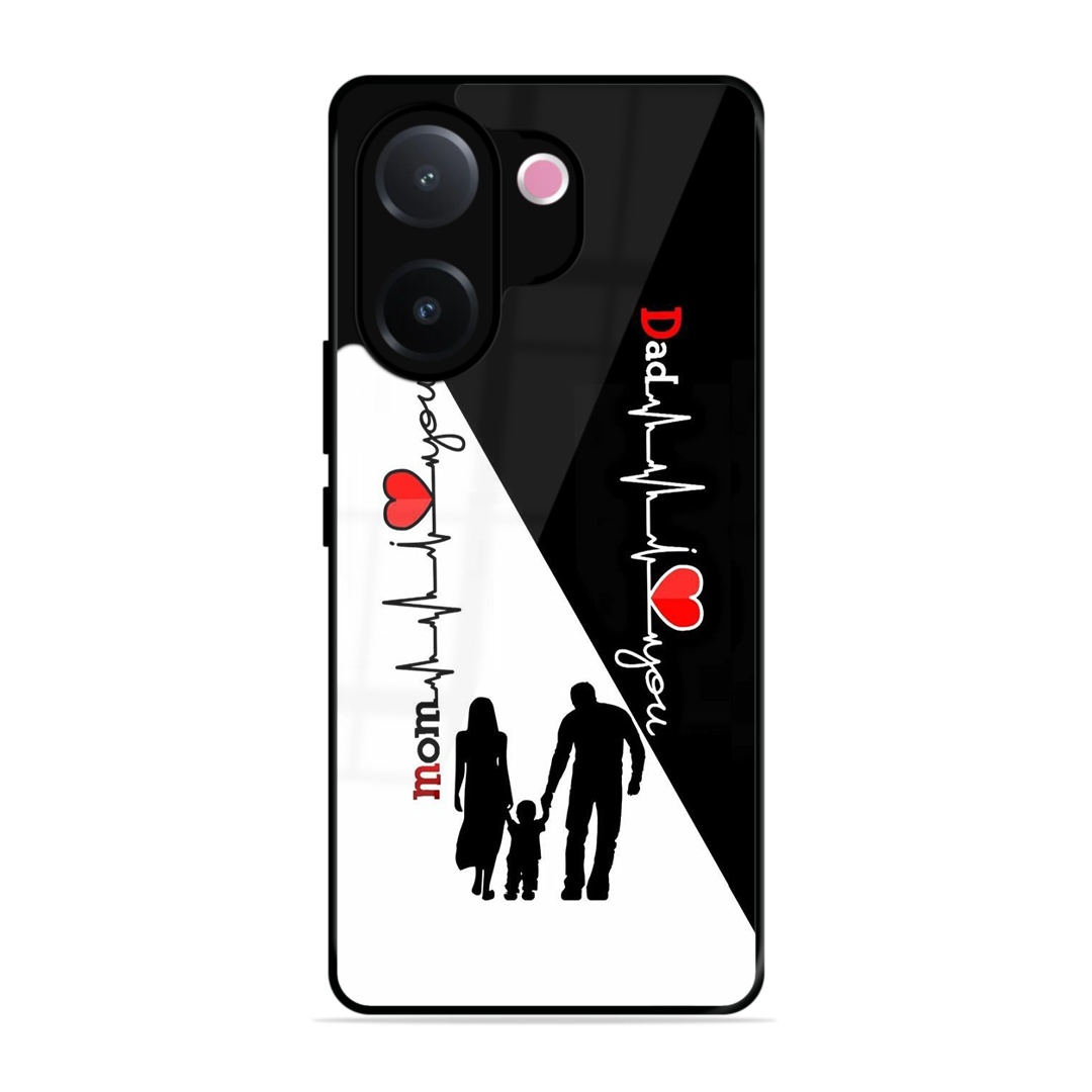 Tempered Glass Coated Metal Back Case for Vivo-V60E 5G Mom & Dad