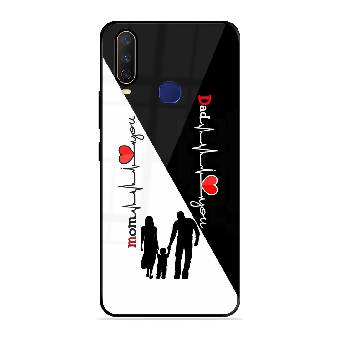Tempered Glass Coated Metal Back Case for Vivo Y12 Mom & Dad