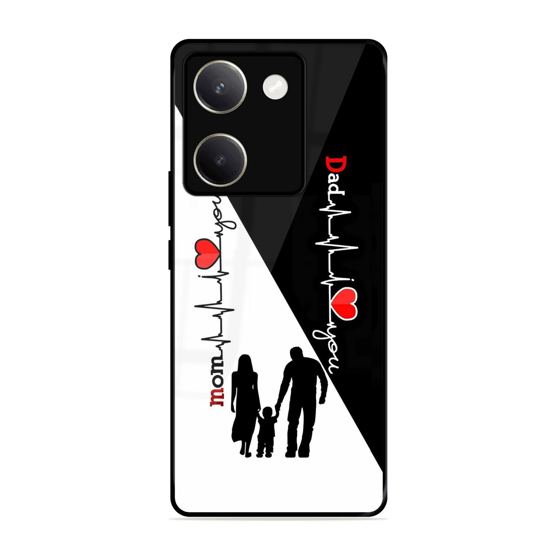 Tempered Glass Coated Metal Back Case for Vivo Y200 Pro 5G Mom & Dad