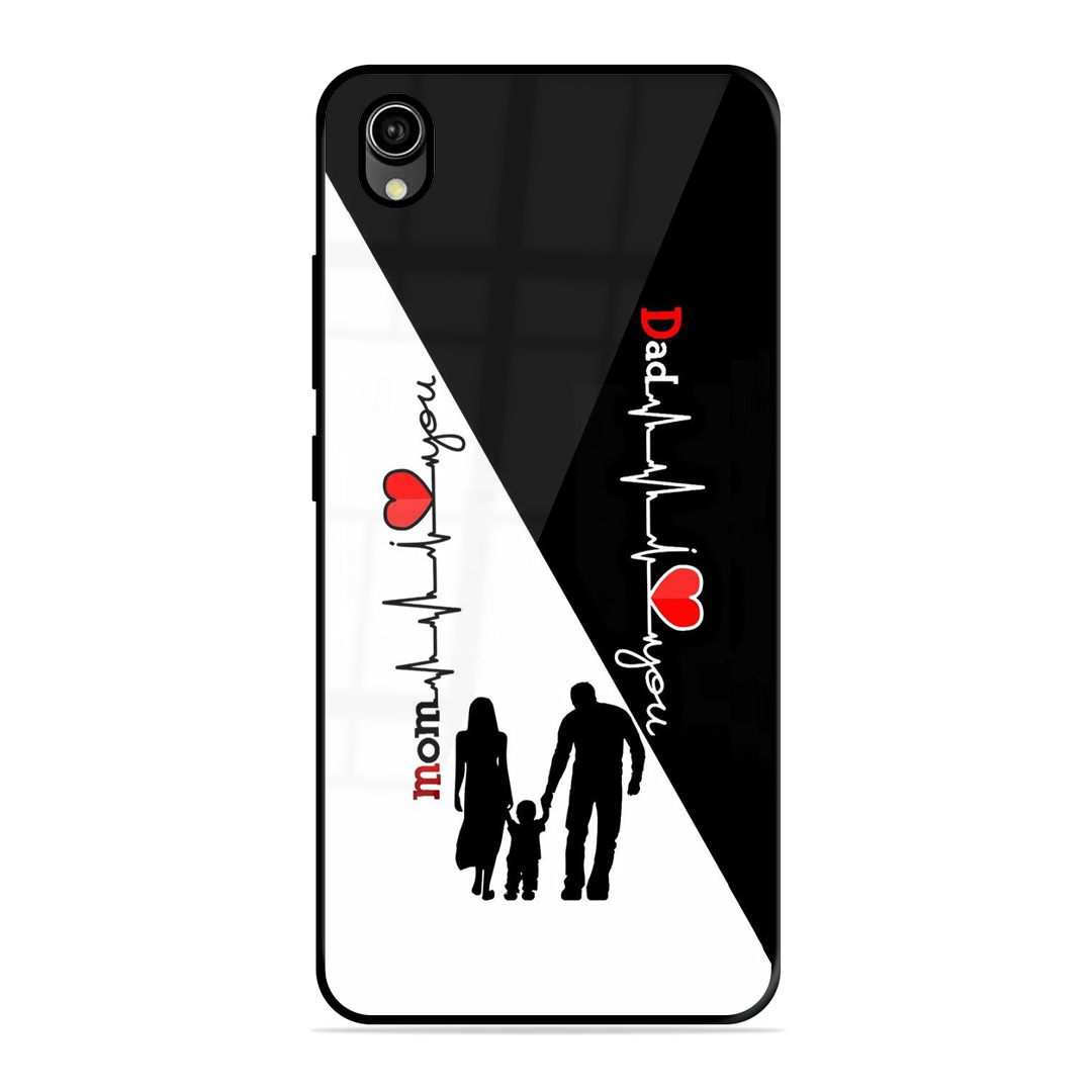 Tempered Glass Coated Metal Back Case for Vivo Y90 Mom & Dad