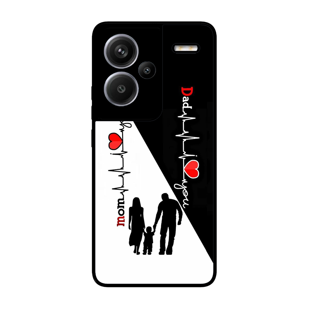 Tempered Glass Coated Metal Back Case for Xiaomi Redmi Note 13 Pro Plus 5G Mom & Dad