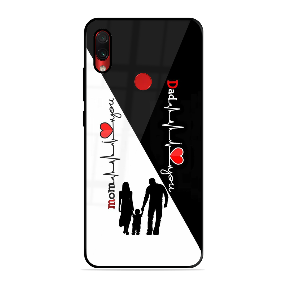 Tempered Glass Coated Metal Back Case for Xiaomi Redmi Note 7 Pro Mom & Dad