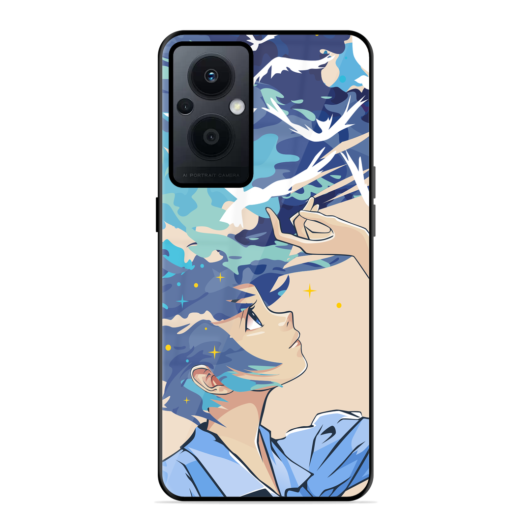 Tempered Glass Coated Metal Back Case for Oppo F21 Pro 5G My Own World