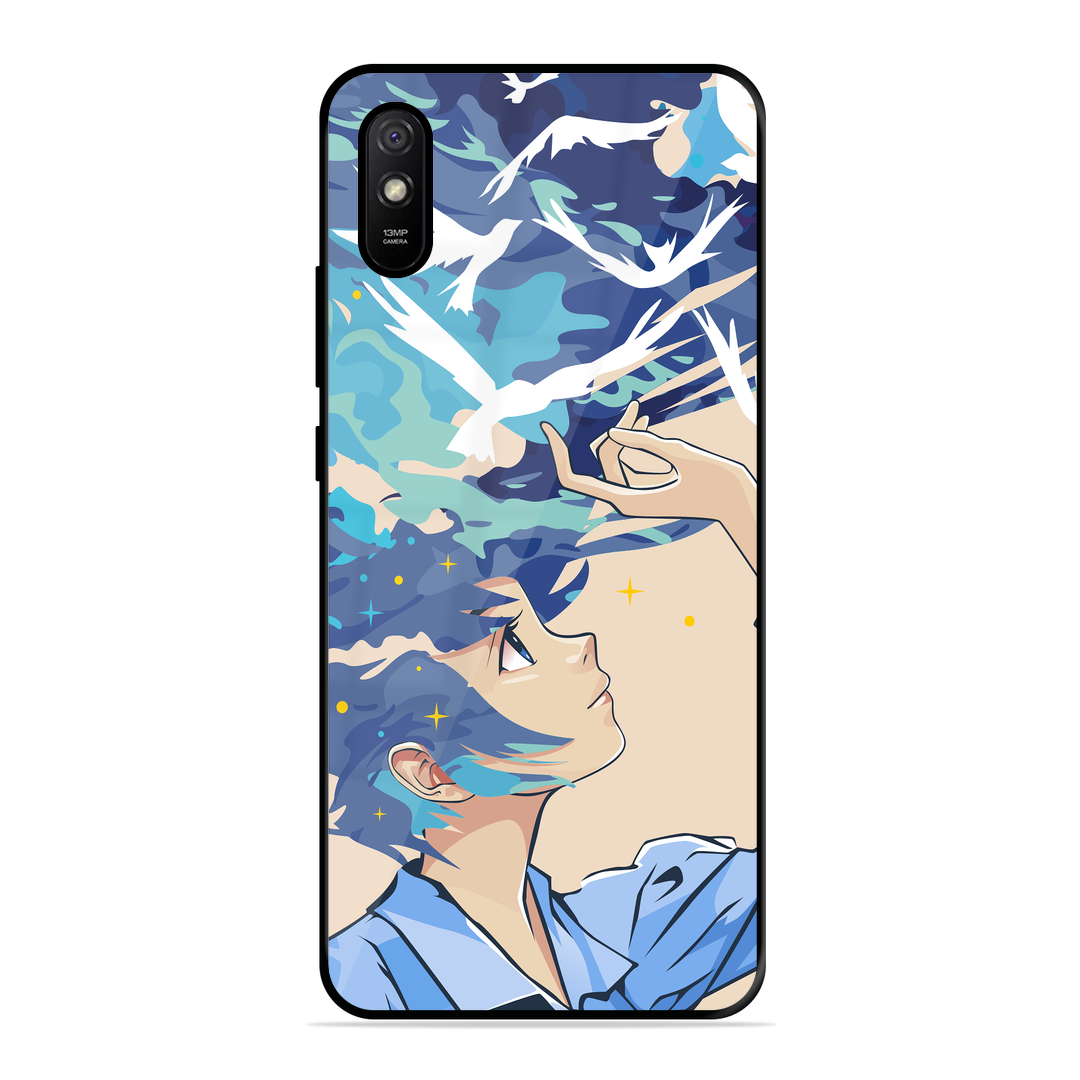 Tempered Glass Coated Metal Back Case for Xiaomi Redmi 9I My Own World