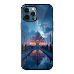 Tempered Glass Coated Metal Back Case for Apple Iphone 12 Pro Night Taj Mahal