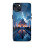 Tempered Glass Coated Metal Back Case for Apple Iphone 13 Night Taj Mahal