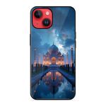 Tempered Glass Coated Metal Back Case for Apple Iphone 14 Night Taj Mahal