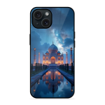 Tempered Glass Coated Metal Back Case for Apple Iphone 15 Night Taj Mahal