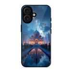 Tempered Glass Coated Metal Back Case for Apple Iphone 16 Night Taj Mahal