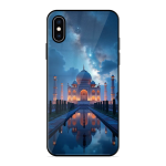 Tempered Glass Coated Metal Back Case for Apple Iphone Xs Night Taj Mahal