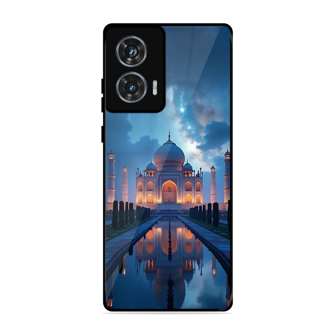 Tempered Glass Coated Metal Back Case for Motorola Moto Edge 50 Fusion Night Taj Mahal