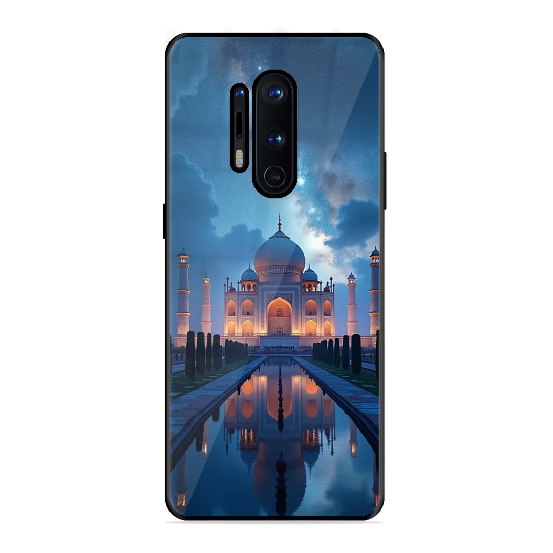 Tempered Glass Coated Metal Back Case for Oneplus 8 Pro Night Taj Mahal