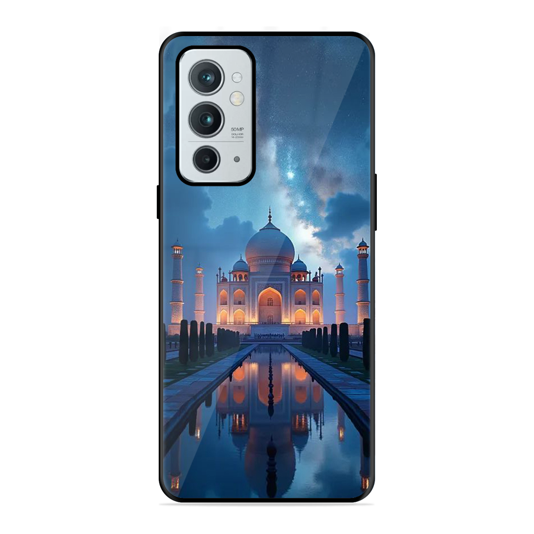 Tempered Glass Coated Metal Back Case for Oneplus 9Rt 5G Night Taj Mahal