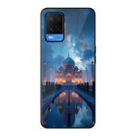 Tempered Glass Coated Metal Back Case for Oppo A54 Night Taj Mahal