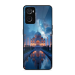 Tempered Glass Coated Metal Back Case for Oppo A76 Night Taj Mahal