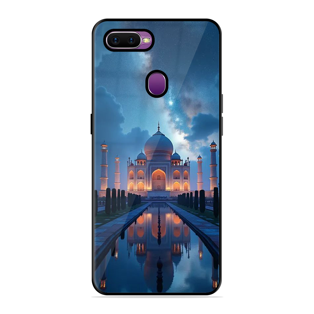 Tempered Glass Coated Metal Back Case for Oppo F9 Night Taj Mahal