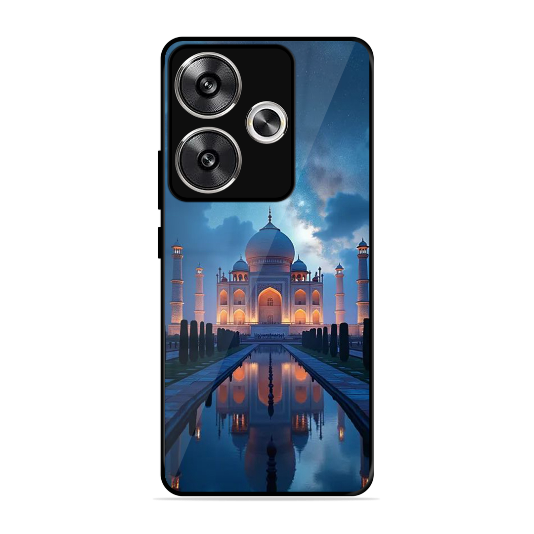 Tempered Glass Coated Metal Back Case for Poco F6 5G Night Taj Mahal