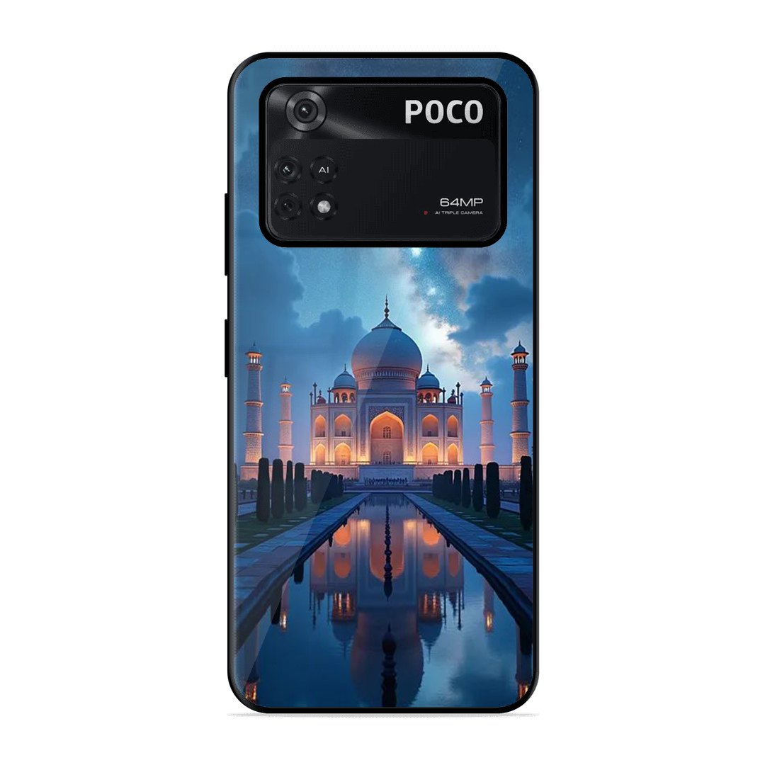 Tempered Glass Coated Metal Back Case for Poco M4 Pro 4G Night Taj Mahal