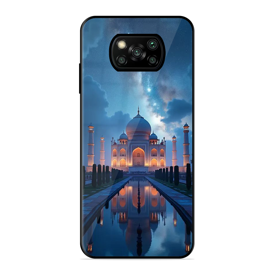 Tempered Glass Coated Metal Back Case for Poco X3 Pro Night Taj Mahal
