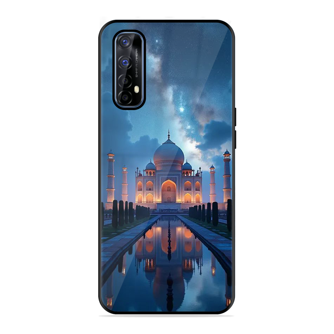 Tempered Glass Coated Metal Back Case for Realme 7 Night Taj Mahal
