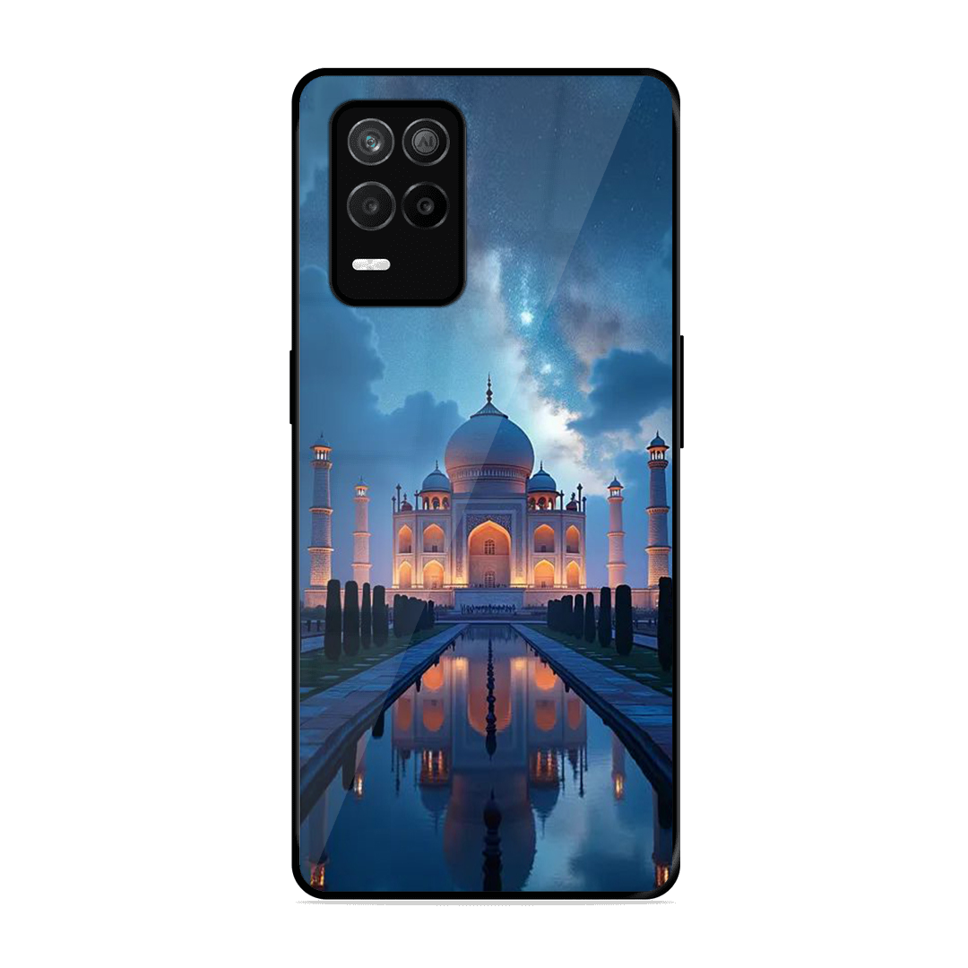 Tempered Glass Coated Metal Back Case for Realme 9 5G Night Taj Mahal