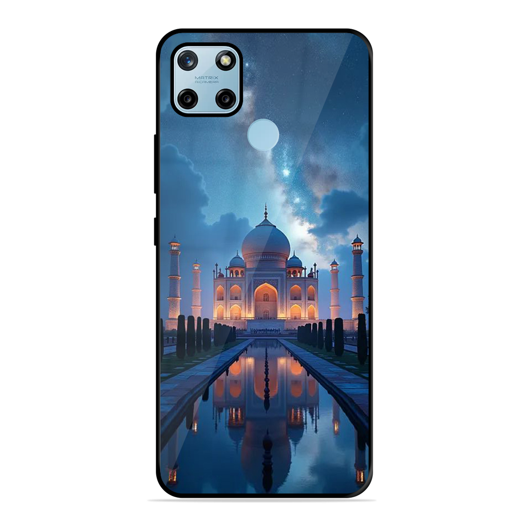 Tempered Glass Coated Metal Back Case for Realme C25Y Night Taj Mahal
