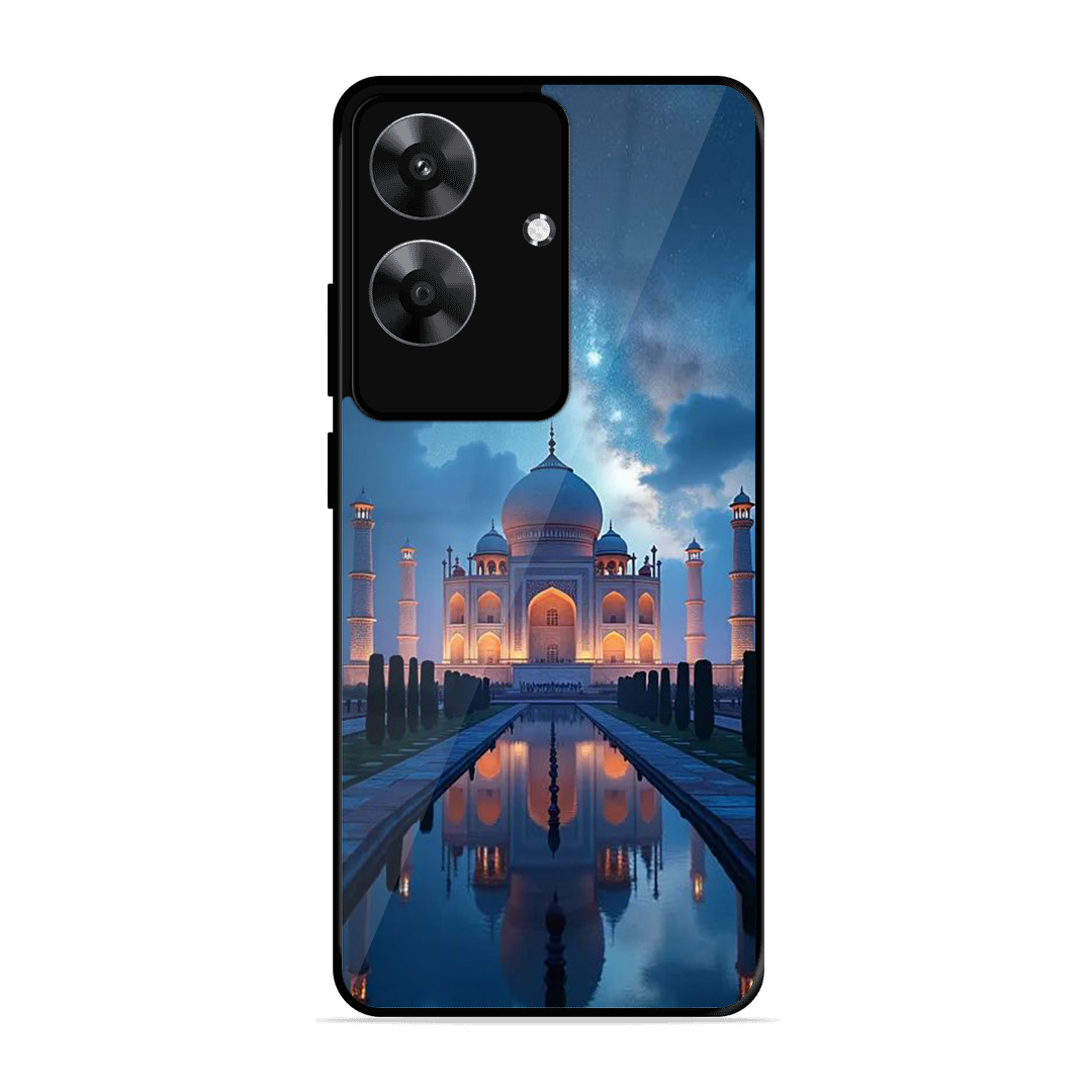 Tempered Glass Coated Metal Back Case for Realme C61 Night Taj Mahal