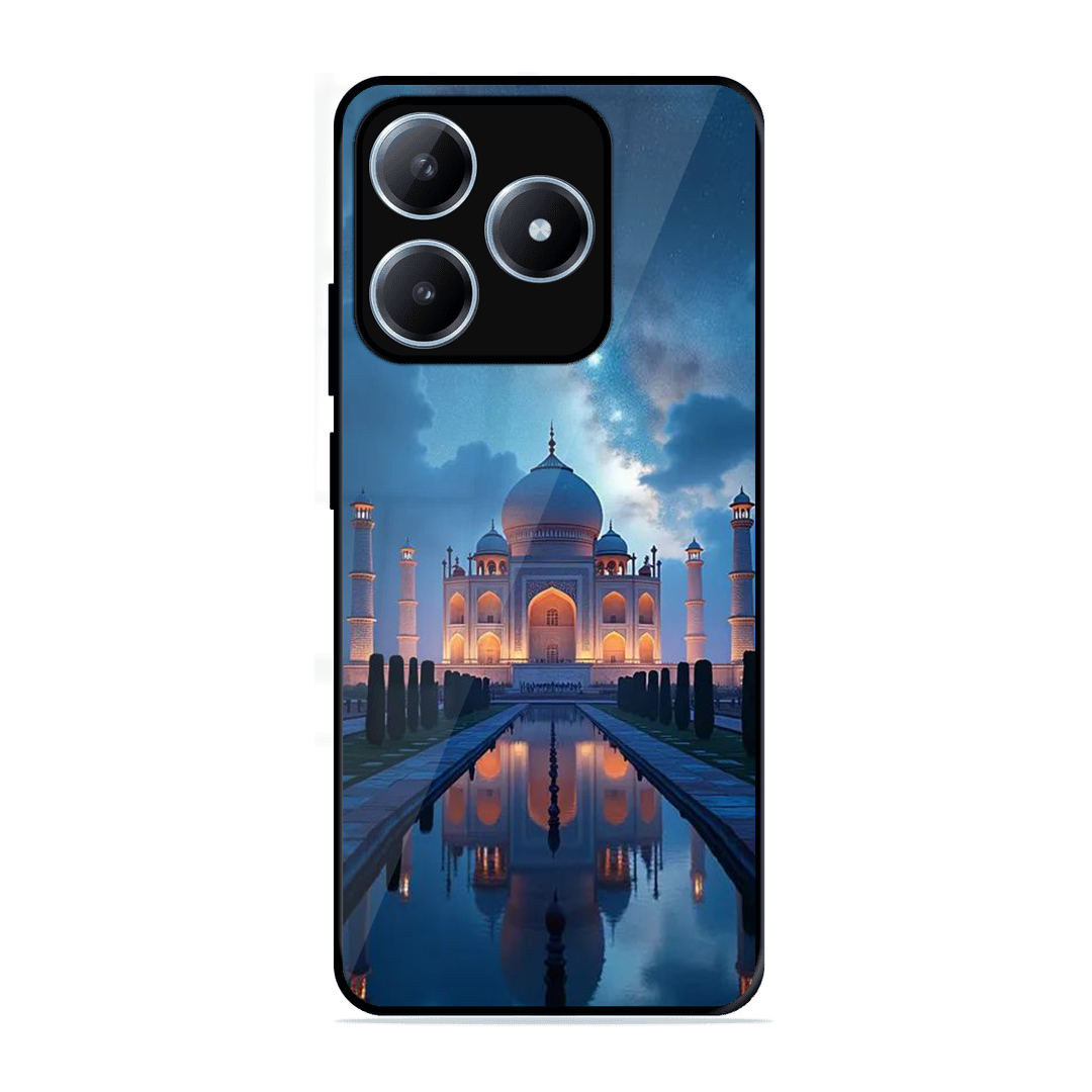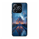Tempered Glass Coated Metal Back Case for Realme C634G Night Taj Mahal
