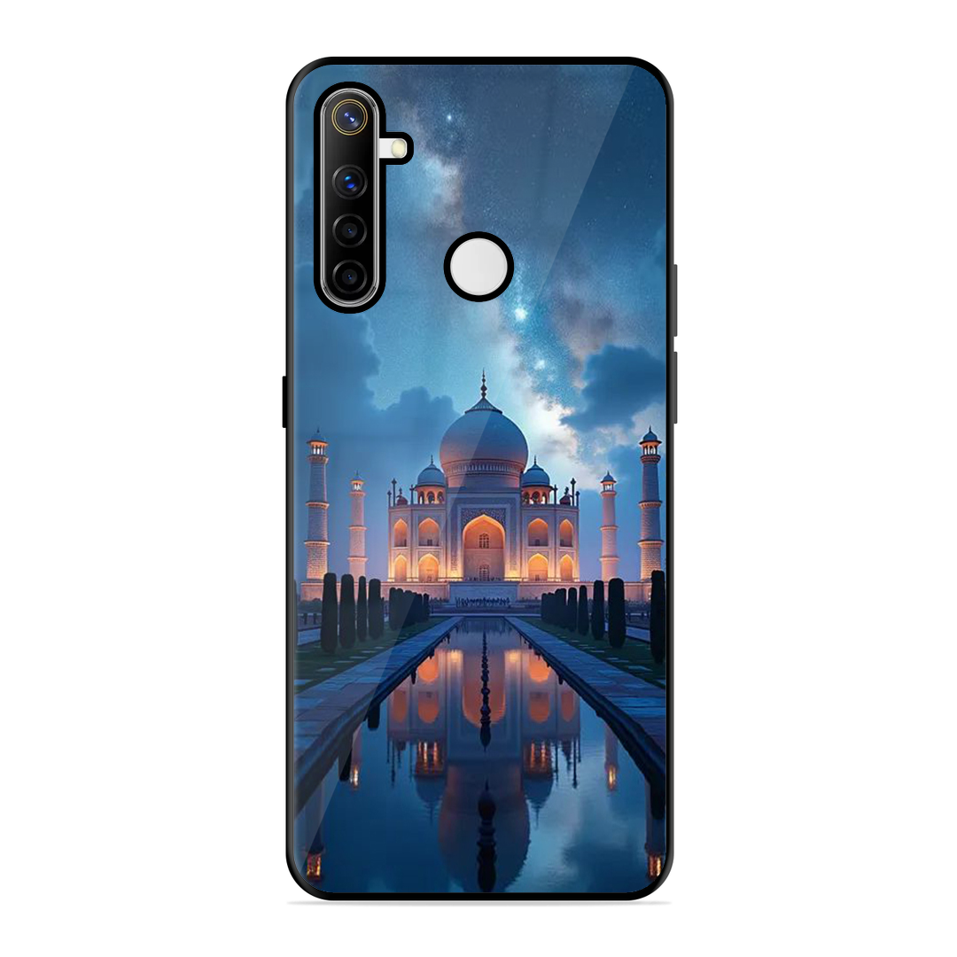 Tempered Glass Coated Metal Back Case for Realme Narzo 10 Night Taj Mahal